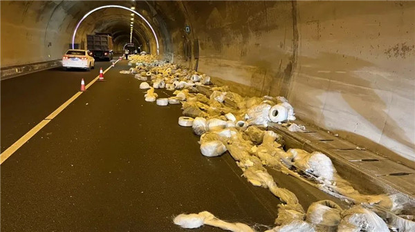 东南网11月14日讯(本网记者 刘惠萍)日前,三明高速交警支队一大队民警接到群众报警:“在长深高速B道岭头一号隧道内,大量货物散落在路面,影响通行。