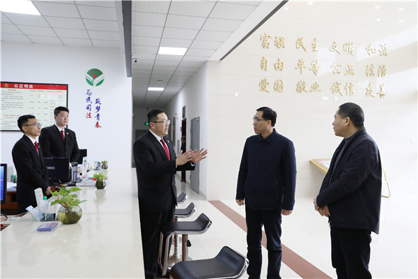 陈枫到永安法院小陶法庭走访调研。 东南网2月20日讯 (通讯员 谢程平 文/图)2月15日,三明市中级人民法院党组书记、院长陈枫到永安法院小陶法庭走访调研,永安法院党组书记、院长郭建武陪同。 陈枫院长一行实地察看该庭“老刘调解室”、党建室、审判法庭等地,详细了解该庭设施建设、人员配备、多元解纷、品牌创建等工作情况。陈院长对法庭干警扎根基层、默默奉献的工作作风和小陶法庭在服务乡村振兴、参与基层治理等方面做的工作表示肯定,强调法庭作为法院派出机构和组成部分,是法院服务地方发展、密切联系群众的桥梁与纽带,要充分发挥好其植根基层的“堡垒”作用,立足审判职能,在司法便民上求突破、在品牌深化上谋创新、在诉源治理上抓实效,为推进乡村振兴战略和实现法治乡村建设提供强有力司法保障,更好推动新时代人民法院基层基础工作实现新发展。 |