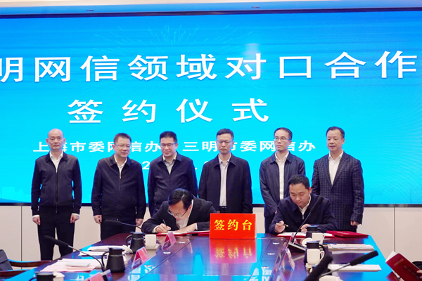 上海市委网信办与三明市委网信办签订对口合作协议。 在现场领导嘉宾的共同见证下,上海市委网信办与三明市委网信办签订对口合作协议,双方将围绕网信业务、网信产业、数字经济、人才培养、智力支持等领域全方位、高效率推进与沪明网信领域对口合作,抓紧实施一批引领性合作项目,持续探索一批示范性经验做法,携手打造对口合作样板,在新时代新征程上携手共进、再结硕果。 签约仪式上,三明市委网信办还与福建师范大学计算机与网络空间安全学院、联通(福建)产业互联网有限公司共同签订三明市网络与信息安全人才创新实训基地合作共建协议,三方将进一步加强合作,共同打造立足三明、服务全省、面向全国,集“产、教、研、战”一体融合的网络与信息安全实训体系,为三明革命老区高质量发展示范区建设赋能增效。