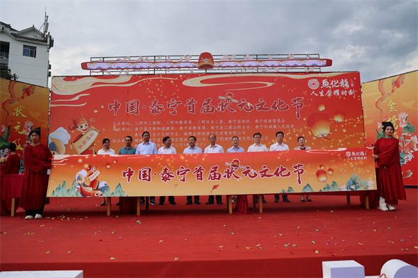 活动启动仪式。 东南网8月12日讯(本网记者 蔡晓卿 通讯员 陈曦 文/图)8月12日,由三明市工商联、三明市教育局、三明市关工委、泰宁县政协、泰宁旅游管委会主办的2023年中国·泰宁首届状元文化节在泰宁成功举办。
