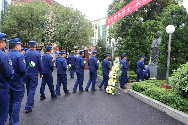 全体人员依次瞻仰郑忠华铜像、敬献鲜花。 东南网4月4日讯(通讯员 叶友宾 文/图)今年是中央军委、国务院授予郑忠华“抢险救援勇士”荣誉称号20周年。为深切缅怀郑忠华烈士,传承忠华精神,激励消防指战员永做忠诚卫士,4月4日,福建省三明市消防救援支队和湖南省消防救援总队真烟真火战训骨干培训班指战员在郑忠华纪念馆联合举行“追思忠华烈士 永做忠诚卫士”缅怀活动,两地消防员先进典型、基层队站骨干和新消防员代表等共计100余人参加了缅怀主题活动。