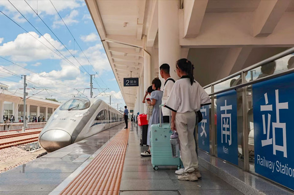 永安南站客运人员加强站台旅客安全乘降。张海根 摄 东南网9月12日讯(本网记者 肖晓敏 通讯员 陈莉 姚成超)记者从中国铁路南昌局集团有限公司永安车务段了解到,今年中秋假期,铁路运输期限为9月14日至9月18日,5天时间里,三明地区预计发送旅客19.4万人次。 据悉,三明地区铁路客流以旅游、探亲和学生旅客为主,主要以去往福州、厦门、南昌短途出行为主。为方便中秋假期旅客出行,南铁永安车务段根据客流变化和车票预售情况,实施“一日一图”,通过加开旅客列车扩大运能供给,全力满足旅客出行需求,管内三明北站、永安南站、泰宁站等重点车站,加强高峰时段旅客乘降组织,动态增加进出站通道,做好老幼病残孕等重点旅客爱心服务,为旅客提供更多便利,不断提升出行体验。 9月14日加开车次: 1.厦门北—三明北加开C9578次,厦门北17:12始发,三明北19:25终到。 2.福州—泰宁加开D9590次,福州18:41始发,泰宁20:43终到。 3.南昌西—建宁县北加开C5323次,南昌西18:45始发,建宁县北20:26终到。 4.三明北—厦门加开C9577次,三明北19:48始发,厦门22:46终到。 5.福州—永安南加开C5304/5次,福州20:02始发,永安南21:58终到。 6.福州南—永安南加开C5232/3次,福州南20:20始发,永安南22:28终到。 7.福州—泰宁加开C9540次,福州20:20始发,泰宁22:24终到。 8.泰宁—福州加开C5229次,泰宁20:38始发,福州22:24终到。 9.建宁县北—南昌西加开C5324次,建宁县北20:58始发,南昌西22:30终到。 10.福州—永安南加开C9594/5次,福州21:07始发,永安南22:59终到。 11.福州—建宁县北加开C5148次,福州21:43始发,建宁县北23:47终到。 12.厦门北—三明北加开C5128次,厦门北21:44始发,三明北23:43终到。 13.福州南—三明北加开C5322次,福州南22:02始发,三明北23:31终到。 14.永安南—福州加开C5306/3次,永安南22:13始发,福州23:52终到。 15.福州—三明北加开C5230次,福州22:46始发,三明北23:55终到。 9月15日加开车次: 1.厦门北—三明加开D9598次,厦门北6:28始发,三明8:51终到。 2.福州—泰宁加开D9200次,福州7:22始发,泰宁9:11终到。 3.泰宁—宁德加开D9589/92次,泰宁7:23始发,宁德10:05终到。 4.三明—厦门北加开D9597次,三明9:26始发,厦门北12:07终到。 5.泰宁—福州加开D9199次,泰宁9:28始发,福州11:24终到。 6.福州—泰宁加开D9590次,福州18:41始发,泰宁20:43终到。 7.福州—永安南加开C5304/5次,福州20:02始发,永安南21:58终到。 8.永安南—福州加开C5306/3次,永安南22:13始发,福州23:52终到。 9月16日加开车次: 1.泰宁—宁德加开D9589/92次,泰宁7:23始发,宁德10:05终到。 2.福州—泰宁加开D9590次,福州18:41始发,泰宁20:43终到。 3.福州—永安南加开C5304/5次,福州20:02始发,永安南21:58终到。 4.永安南—福州加开C5306/3次,永安南22:13始发,福州23:52终到。 9月17日加开车次: 1.厦门北—三明加开D9598次,厦门北6:28始发,三明8:51终到。 2.泰宁—宁德加开D9589/92次,泰宁7:23始发,宁德10:05终到。 3.三明—厦门北加开D9597次,三明9:26始发,厦门北12:07终到。 4.厦门北—三明北加开C9578次,厦门北17:12始发,三明北19:25终到。 5.福州—泰宁加开D9590次,福州18:41始发,泰宁20:43终到。 6.南昌西—建宁县北加开C5323次,南昌西18:45始发,建宁县北20:26终到。 7.三明北—厦门加开C9577次,三明北19:48始发,厦门22:46终到。 8.福州—永安南加开C5304/5次,福州20:02始发,永安南21:58终到。 9.泰宁—福州加开C5229次,泰宁20:38始发,福州22:24终到。 10.建宁县北—南昌西加开C5324次,建宁县北20:58始发,南昌西22:30终到。 11.永安南—福州加开C5306/3次,永安南22:13始发,福州23:52终到。 12.福州—三明北加开C5230次,福州22:46始发,三明北23:55终到。 9月18日加开车次: 1.厦门北—三明加开D9598次,厦门北6:28始发,三明8:51终到。 2.泰宁—宁德加开D9589/92次,泰宁7:23始发,宁德10:05终到。 3.三明—厦门北加开D9597次,三明9:26始发,厦门北12:07终到。 铁路部门温馨提示,假期客流密集,乘车时请携带与票面信息一致的有效身份证件,核对好乘车时间、车站、车次等信息,预留充足时间安检、验票、换乘,以免耽误行程。有出行需求的旅客可通过铁路12306网站或手机客户端及时了解列车开行和具体服务信息,合理安排出行。 |