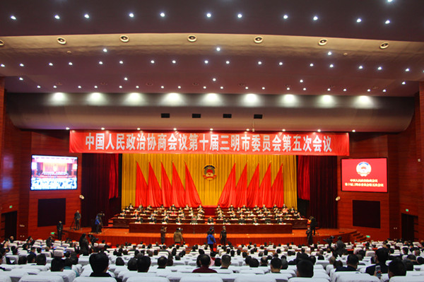 三明市政协十届五次会议隆重开幕 东南网三明1月17日讯(本网记者 肖晓敏 文/图)今日(1月17日)上午9:00,三明市政协十届五次会议在三明市会议中心隆重开幕,会期三天。