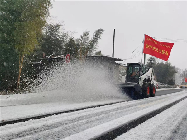 建宁公路分中心除雪除冰 三明市交通局供图 22日,在建宁县国道528线岩上路段和省道308线甘家隘路段,路面已被冰雪覆盖,建宁公路分中心第一时间到达现场,通过“机械+人工”清扫、撒布融雪剂等方式除雪除冰,避免长时间结冰导致道路阻断,确保道路畅通,同时提醒过往司乘人员注意行车安全,对暂无法通行道路设置警示标志、采取临时封闭措施。