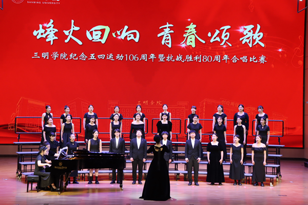 三明学院举办纪念五四运动106周年暨抗战胜利80周年合唱比赛(专业组) 东南网5月15日讯(通讯员 喻磊 赖泓恺 陈伟健 徐文杰)5月14日晚,由三明学院团委主办、教育与音乐学院承办的纪念五四运动106周年暨抗战胜利80周年合唱比赛(专业组)在音乐厅隆重举行。三明学院大学生艺术团暨教育与音乐学院2022至2024级9个音乐专业班级同台竞技,为观众呈现了一场兼具艺术感染力与思想深度的视听盛宴。 本次比赛以“烽火回响·青春颂歌”为主题,聚焦五四精神与民族抗战的历史内涵,9支参赛队伍围绕党和国家的时代征程,倾情演绎了《红旗飘飘》《不忘初心》《灯火里的中国》《在灿烂的阳光下》等经典曲目。 2022级音乐学(师范)1班别出心裁改编《天耀中华》,生动诠释了人民对幸福生活的期盼,对国家兴旺、富强、发展的自豪;而由2022至2024级全体音乐学子共同演绎的校歌联唱,让百年闽师精神在歌声中焕发出新的生机,瞬间将现场气氛推向最高潮;大学生艺术团萨克斯管乐团带来的《红色童谣》,以独特的音色为比赛画上圆满句点。 最终,2022级音乐学(师范)1班和2班凭借作品的精彩演绎共获一等奖,2022级音乐学(师范)2班朱纭同学感慨:“每一次排练都是一次历史重温,歌声让我们与党和国家的脉搏同频共振。”教育与音乐学院党委书记伍荣生表示:“教育与音乐学院将以‘国家级一流本科专业’建设为契机,培养更多‘一专多能’的应用型音乐人才。” |