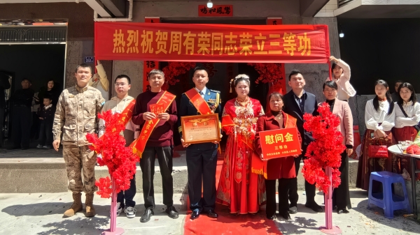 大田:双喜临门!现役军人婚礼当天荣收三等功喜报